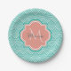Chic teal green art deco fish scale, placas de papel padrão em escala de peixe com um crachá de folha de papel de rosa claro que você pode personalizar adicionando facilmente seu monograma e nome. Esta é parte da Coleção de Primavera de Dahlia Monogramas Blooming em Arcadia Fishcale.