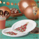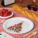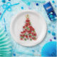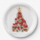 Uma árvore de Natal feita de ornamentos e pacotes de presentes decora esta bonito placa de papel