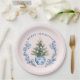 Prato De Papel Árvore de Natal Pink & Blue Damask Crest