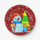 Prato De Papel Árvore de Natal Snowman Apresenta Texto de Ano Ver