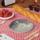 Carvalho russo e antigo semeador acende pratos de papel para casamento