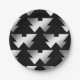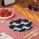 Uma placa de Natal muito contemporânea, com um padrão geométrico de árvores de Natal pretas em fundo prateado, para adicionar um toque de estilo de Natal mais profundo ao seu jantar de férias e entreter estas férias.