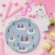Perfeito para uma festa de Natal ou casa de férias aberta. Estas árvores estilizadas cercadas de neve. As árvores são cor-de-rosa azul e verdes com fundo azul claro. A vibração retrô perfeita para a sua festa. Corresponder e coordenar suprimentos de festas e itens de decoração pessoal disponíveis na minha loja. Partido da coleção Vintage Holly Holiday. Este é um design original. K. McIver para Steilacoom Design Studio © 2023. Todos os direitos reservados.