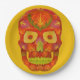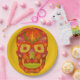 Meu Dia do crânio inspirado nos mortos celebra a vida e a morte com uma colagem das minhas pinturas em folha escaneta, apresentando as vermelhas e amarelos do outono.