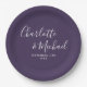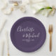 Prato De Papel Assinatura Elegante Script Roxo Casamento