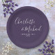 Placas de papel de casamento roxo de assinatura elegante personalizadas com nomes de estilo de assinatura e data de casamento especial. Projetado por Thisisnotme©