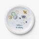Prato De Papel Astronauta Azul Dourado Aniversário do Espaço Exte