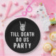 Até que a morte nos separe pratos de papel preto com uma mão de esqueleto e letras brancas. Decorações de mesa de festa assustadoras para um chá de panela, despedida de solteira, festa de casamento ou qualquer festa temática. Certifique-se de visitar nossa coleção para ver mais itens coordenados que combinam com este design para o seu evento especial.