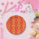 Prato De Papel Atomic Starbursts on Red and Orange Ogee Pattern