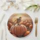 Prato De Papel Autumn Bird Cantando em uma abóbora