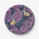 Design de primavera com dois pássaros azuis com duas tetas percorrendo galhos liláticos floridos. Desenhado à mão no padrão de vetor sem costura do Illustrator.