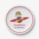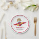 Chapas de papel de avião em vermelho e azul, com formulações personalizadas.