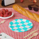 Placa de papel com um padrão azul aqua e branco de verificação. Perfeito para qualquer reunião.