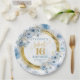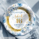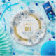 Prato De Papel Azul Claro Único Doce 16 Placa Luminosa Dourada