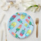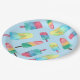 Estas placas de papel apresentam as minhas gravuras originais de Summer Watercolor, Coloridas, picles. Chapas de papel picolé para uma festa de verão, doce tratam o aniversário do tema ou só porque são bonitinhos. Fundo azul.