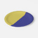Esta placa de papel tem um lado amarelo e azul no outro.