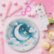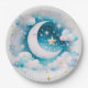 Prato De Papel Azul e Crescente Branco Lua Celestial Boho Moderno