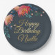 Prato De Papel Azul Escuro, Elegante, Flores Whimsical, Destaque