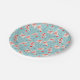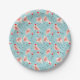Design festivo inspirado no meio do século, apresentando flamingos rosa usando chapéus de Papai Noel, formas geométricas em creme e estrelas em um fundo azul (mudança de cor). Um design personalizável para você personalizar com seu próprio texto, imagens e ideias. Uma imagem de arte digital original criada por QuirkyChic.