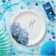 Prato De Papel Azul Hydrangea Flores De Madeira Fundo