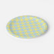 Arte abstrato digital de quadrados azuis pastel e amarelos em formação controlada.