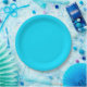 "Sea Blue Paper Plates" (Placas de Papel Azul no Mar) para combinar com a decoração do seu partido.