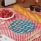 Prato De Papel Azul-padrão de coelhinho da Páscoa bonito