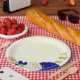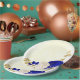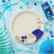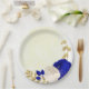 Prato De Papel Azul real e flores brancas douradas