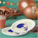 Flores rosas, azuis e brancas, com ouro, folhas de papel botânico para casamentos.