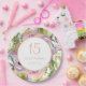 Floral elegante de cor púrpura, rosa e aquosa amarela, com festa de aniversário de papel dourado, brilhante, personalizado com seu nome, idade (qualquer idade) e data da festa.