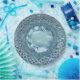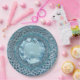 Conjunto de oito placas de papel de 9 polegadas com uma imagem de fabuloso vidro azul recortado com um lindo centro topaz azul. Veja toda a coleção em "Embarcação do Mar" na COMIDA/BEV | Seção pratos.