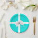 Prato De Papel Azul Turquesa e Branco Elegante Glam Diamante Arco
