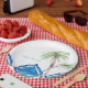 Placa de papel personalizada de Azulejo azul cobalto. Redonda. Casamento de praia.