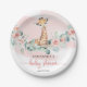Design para placas de papel Chá de fraldas bonitinho apresenta girafa de bebê girante em rosas cor-de-rosa embebidas em eucalipto. Não hesite em contactar-me para obter itens ou personalizações correspondentes. Impressões violetas ©