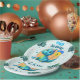 Make the birthday table look Jurassic Park adorable! These paper plates decorated with cute baby dinosaurs are fully customizable with a name, age, or a special saying. Made of sturdy cardboard and featuring soft colors, they're the perfect addition to a themed children's party. Ideal for serving snacks, cake, or whatever you can imagine, they combine functionality.