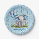 Prato De Papel Baby Elephant and Wildflower Boy Baby Shower
