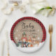 Placa de papel com o tema do inverno, com criaturas de madeira lindamente ilustradas sobre uma coroa rústica e fundo xadrez. Itens correspondentes disponíveis em nossa loja!