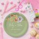 Sage green Baby in bloom meadow colorful dusty blue flowers baby shower wildflowers printed paper plates template. Watercolor wildflowers mixed colors dusty blue for a garden flowers themed baby shower personalized tableware