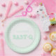 Prato De Papel Baby-Q Mint Green Gingham Baby Shower