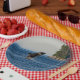 Prato De Papel Baleia Assassina Saindo da Água do Oceano