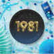 Balões de aniversário mylar Dourados para o ano de nascimento de 1981 sobre fundo negro e azul gradiente com estrelas noturnas