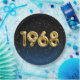 Balões de folha de ouro para o ano de nascimento de 1968 sobre fundo preto e azul gradiente com estrelas noturnas para festa de aniversário.