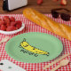 Prato De Papel Banana que é de sorriso, estabelecendo e relaxando