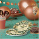 Estas placas de papel personalizadas, verdes e amarelas, lúcidas, "Go Bananas!" apresentam bunches de bananas amarelas desenhadas manualmente e folhas de bananas verdes tropicais contra um fundo amarelo com sutis gotas de chuva detalhando em um amarelo mais claro. Todo texto é editável. Personalizar com Nome, Evento e Data.