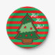 Placas festivas, corajosas, vermelhas e verdes em folha de papel de Natal com design de árvore de Natal.
