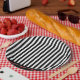 Prato De Papel Bandas Pretas e Brancas com Coração Vermelho Brilh