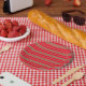 Prato De Papel Bandas vermelhas e Douradas