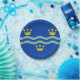 Placa de papel com design com uma bandeira do condado histórico de Cambridgeshire, na Inglaterra, Excelente-Bretanha; bandeira azul com três coroas ouros e duas ondas