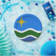 Papelão com design com a bandeira de Duluth, Minnesota. Uma bandeira azul, verde e branca com uma estrela amarela