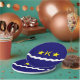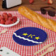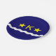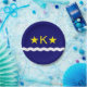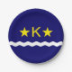 Placa de papel com design com bandeira de Kinshasa, capital da República Democrática do Congo, bandeira azul com onda branca, duas estrelas ouros e letra "K" no centro